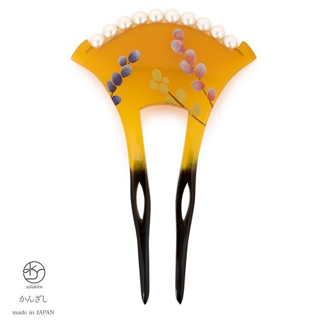 かんざし 和装 バチ型 簪 髪飾り べっ甲色 荻 蒔絵調 イミテーションパール 二本足 かんざし フォーマル 日本製 成人式 卒業式 結婚式 パーティー 着物