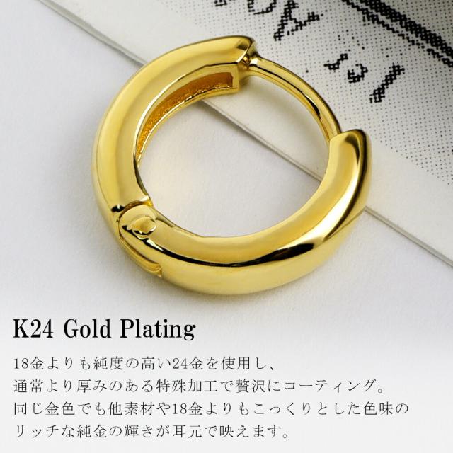 k18よりも純度の高いk24を使用し、 通常より厚みのある特殊加工で贅沢にコーティング。 同じ金色でも他素材や18kよりもこっくりとした色味の リッチな純金の輝きが映えます。
