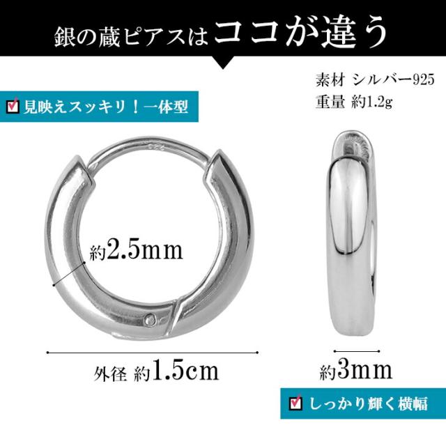 ピアス リング フープピアス シンプル シルバーピアス 1P 片耳用 シルバー ゴールド 丸型 リングピアス メンズピアス フープ シルバー925 メンズ