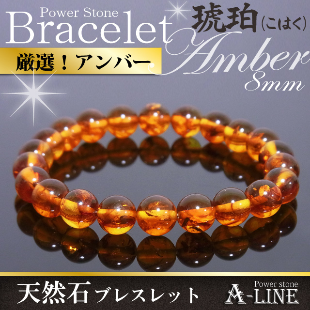 送料無料 パワーストーン ブレスレット 古代からの贈り物、最古の宝石 アンバー(琥珀)8mm PW-2776