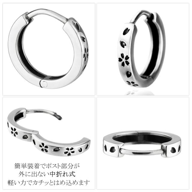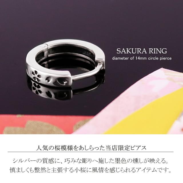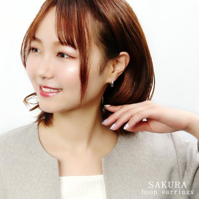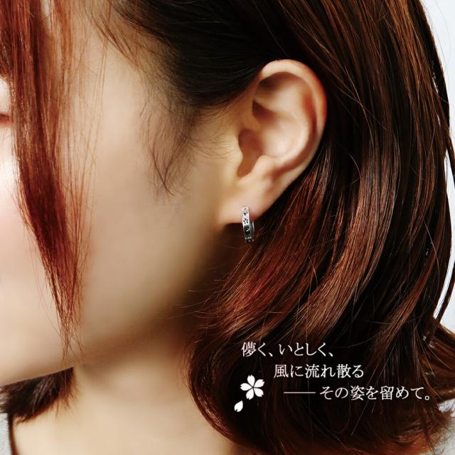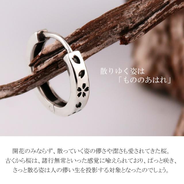 舞い散る 桜の花びら フープ シルバーピアス 1P 片耳用 シルバー925 フープピアス シンプル 桜 さくら サクラ 花びら 花弁 春 四季 季節 和 和柄