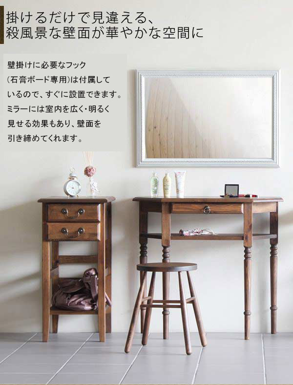 鏡 壁掛け おしゃれ アンティーク ミラー ホワイト 壁掛けミラー ウォールミラー 姿見 幅53cm 高さ78cm F-007WM4570 ◇