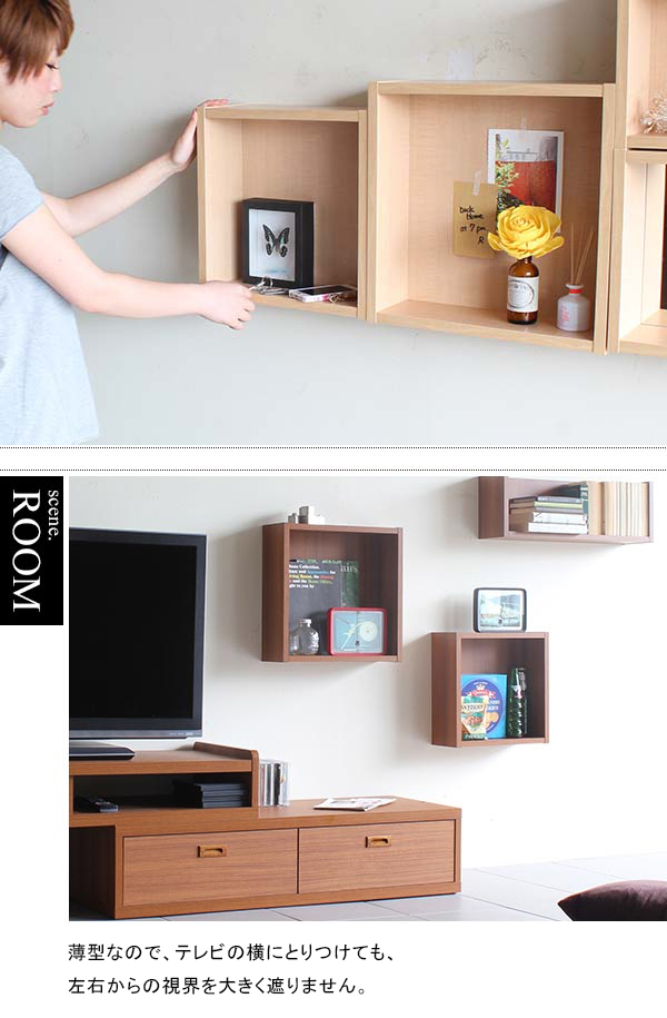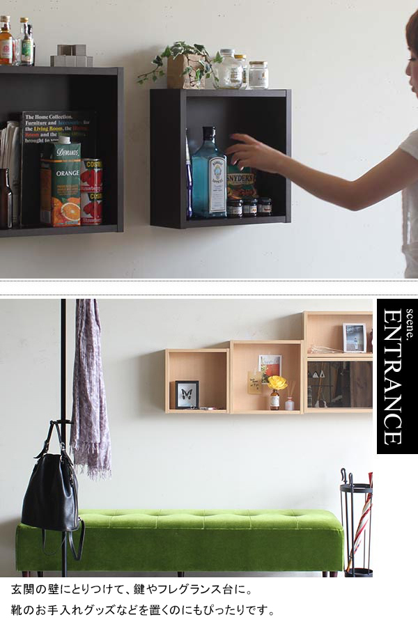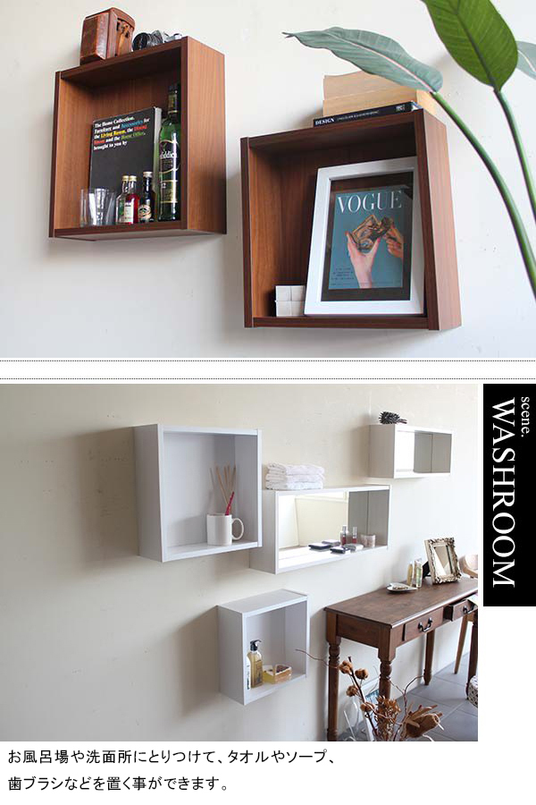 ウォールボックスの壁面への取り付けは取扱説明書をよくお読みの上、付属の壁掛け用フック(石膏ボード壁専用)をお使いください。ウォールラックの落下やラックの上に置いたものの落下により発生した損害に対して当店は一切責任を負いかねますので、十分ご検討の上ご使用ください