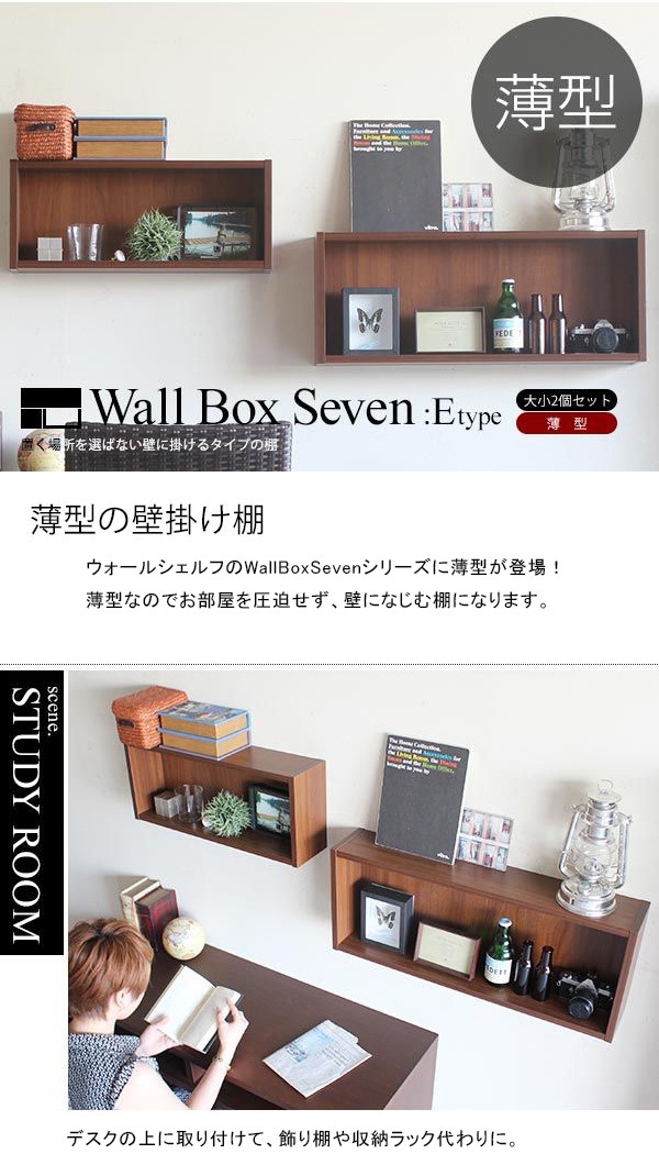 【薄型大小2個セット】 ウォールラック 壁掛け 棚 収納 壁掛け収納 ディスプレイシェルフ おしゃれ ウォールシェルフ 木製 日本製 石膏ボード用 インテリア オシャレ 壁付け 壁かけ 賃貸取り付け 壁掛けラック 薄型 長方形 Wall Box Seven Etype ★