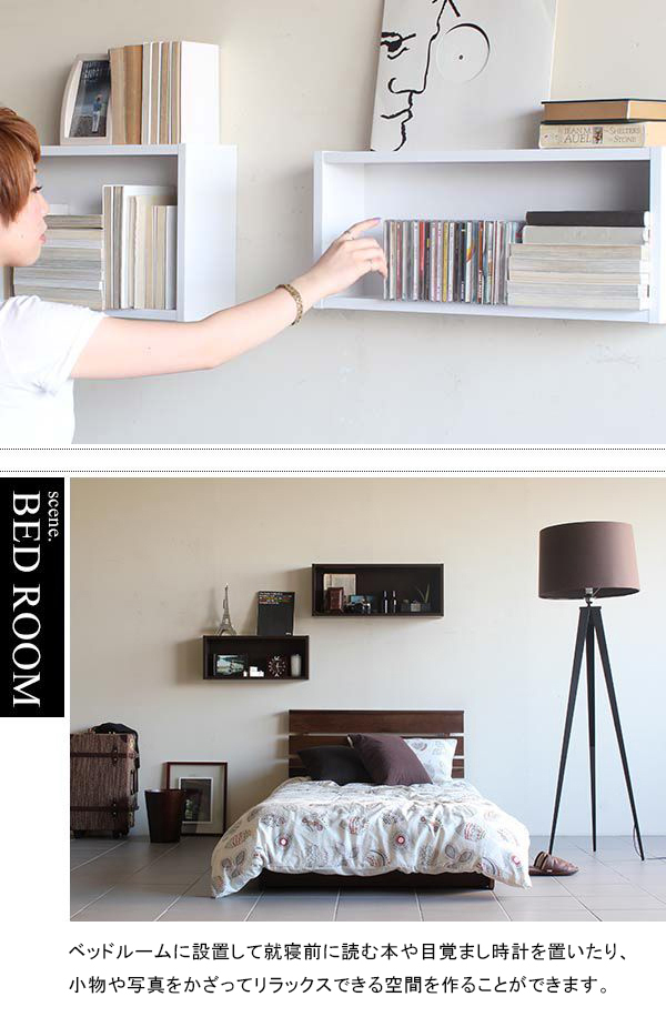 ウォールボックスの壁面への取り付けは取扱説明書をよくお読みの上、付属の壁掛け用フック(石膏ボード壁専用)をお使いください。ウォールラックの落下やラックの上に置いたものの落下により発生した損害に対して当店は一切責任を負いかねますので、十分ご検討の上ご使用ください