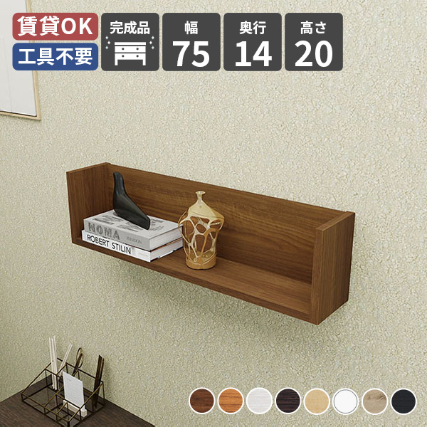 壁掛け棚 シェルフ ウォールシェルフ ウォールラック ラック 壁掛け 壁掛け収納 収納 棚 収納棚 壁面収納 木製 ディスプレイラック 壁面ラック シンプル 省スペース ナチュラル 飾り棚 賃貸 おしゃれ リビング アンティーク 北欧 取り付け 黒 薄型 幅75 石膏ボード 高さ20 ★