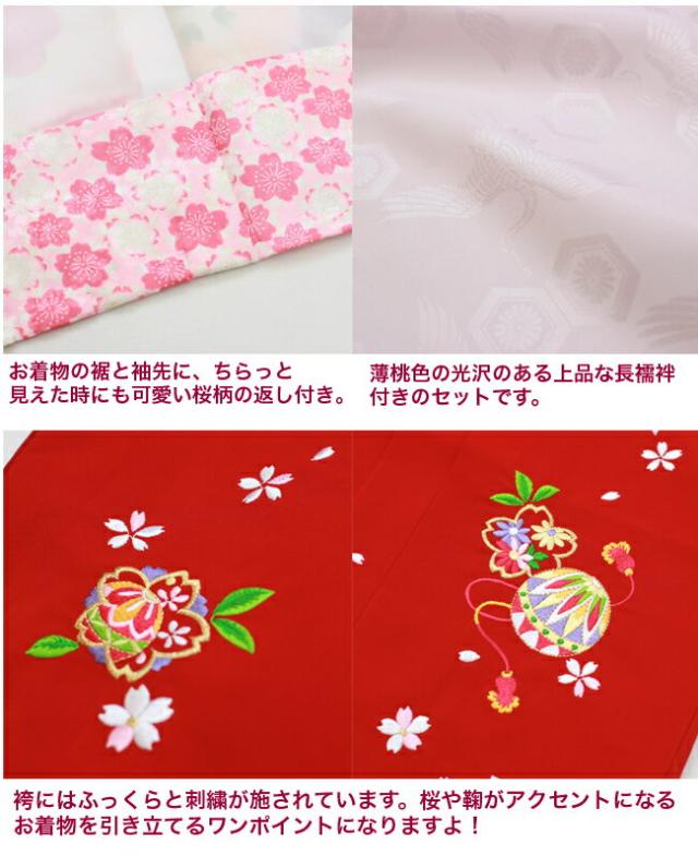 セット内容 着物・袴・草履・巾着・長襦袢(半衿付) 半巾帯・着付け小物(腰紐2本・伊達締め2本・衿芯・コーリンベルト・帯板)・重ね衿・和装用肌着・ソックスタイプ足袋(プレゼント)