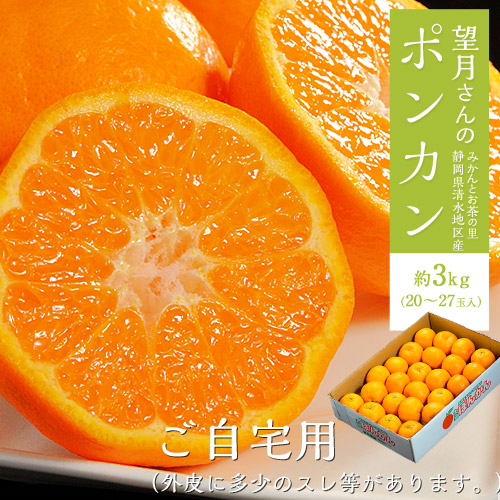 望月さんのポンカン 静岡県産 約3kg(目安:20〜27玉) バラ詰め 無選別 スレ傷あり 産地箱 ※常温 送料無料