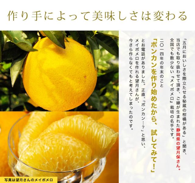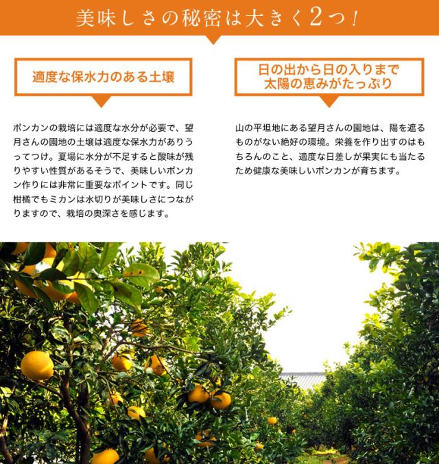 引き締まった果肉と、適度な酸味があり、1〜2月の柑橘として人気の高いポンカン。 デコポンの親であることからも分かるように、品種としては大変に優秀です。『望月さんのポンカン』は引き締まった果肉に、食べやすい薄い皮。みかんのように簡単に手で剥け、ポンカン特有の香りと果肉感が癖になります。