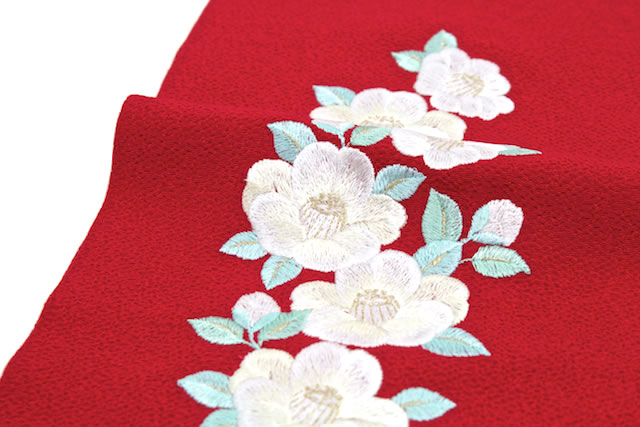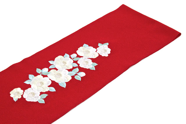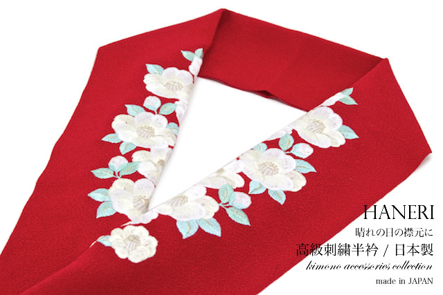 半襟 刺繍 振袖 成人式 半衿 卒業式 袴用 赤 レッド 椿 縮緬 結婚式 フォーマル カジュアル 日本製