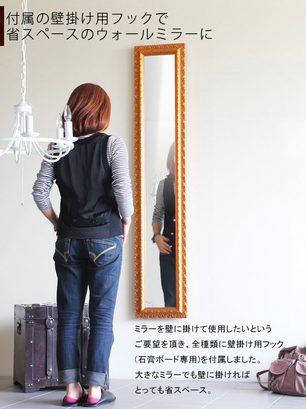 スタンドミラー アンティーク ゴールド 全身鏡 壁掛け 白 おしゃれ 姿見 全身ミラー 姫系 鏡 ウォールミラー F-003SM3015 ◎