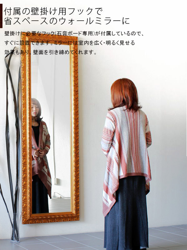 スタンドミラー 全身鏡 アンティーク調 ミラー 大型 全身ミラー 姫系 姿見 ワイドスタンドミラー 幅60cm 高さ200cm F-001SM4018 ◎