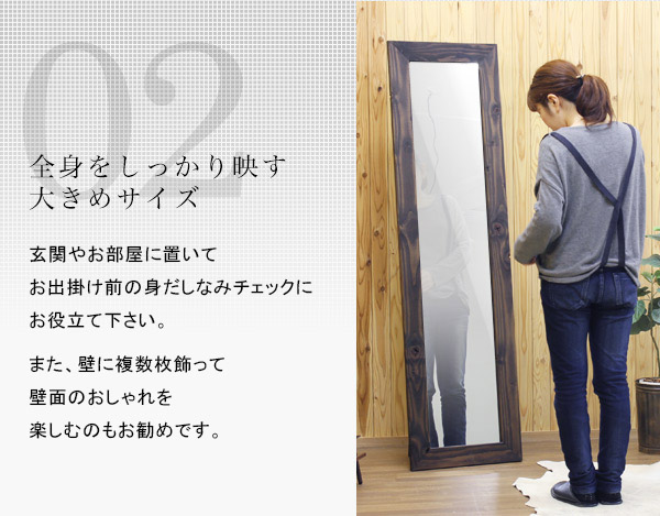 鏡 姿見 スタンドミラー 壁掛け 木枠 壁掛けミラー アンティーク 木製 西海岸風 style SM3015 ▽