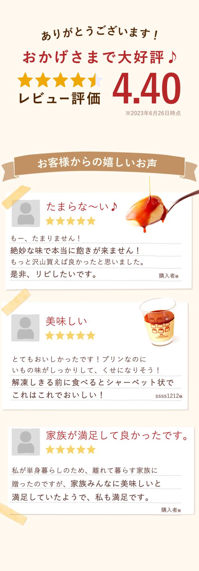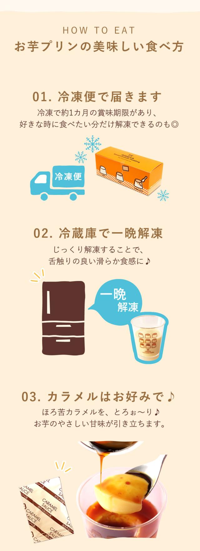 | 商品内容 | おいもやのプリン 計3個 ●スイートポテト味 3個 ●カラメル 3個 ●スプーン 3セット |