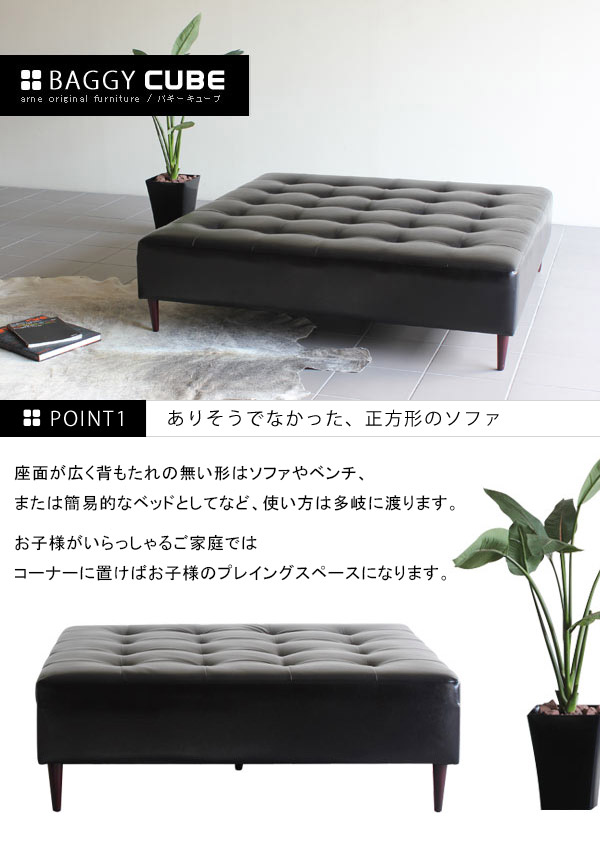 ベンチソファー 三人掛け ソファー ベンチ レザー ベンチソファ 背もたれなし 日本製 モダン Baggy Cube 6×6 合皮 □