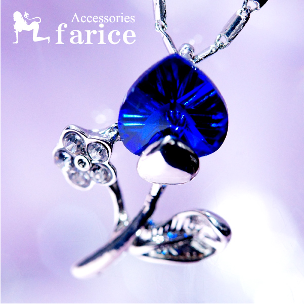 サファイアカラーキュービックジルコニア ハート石留め装飾 石付きフラワー(花)&リーフ(葉) レディース ペンダント ネックレス