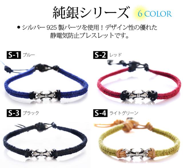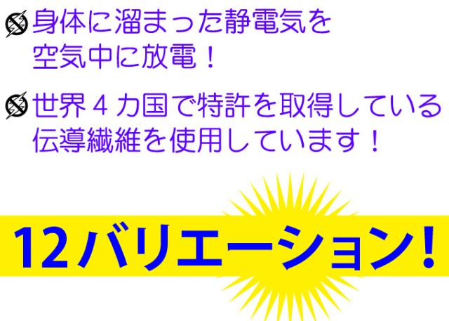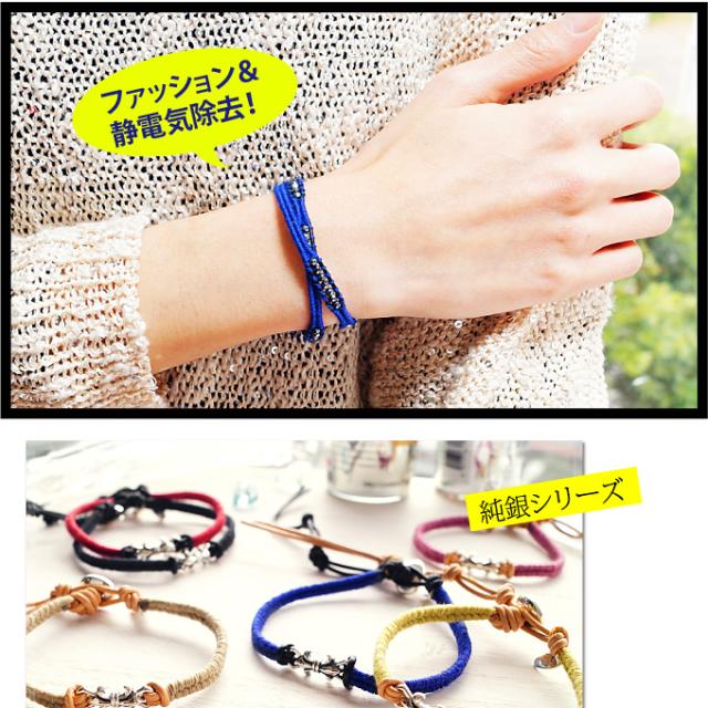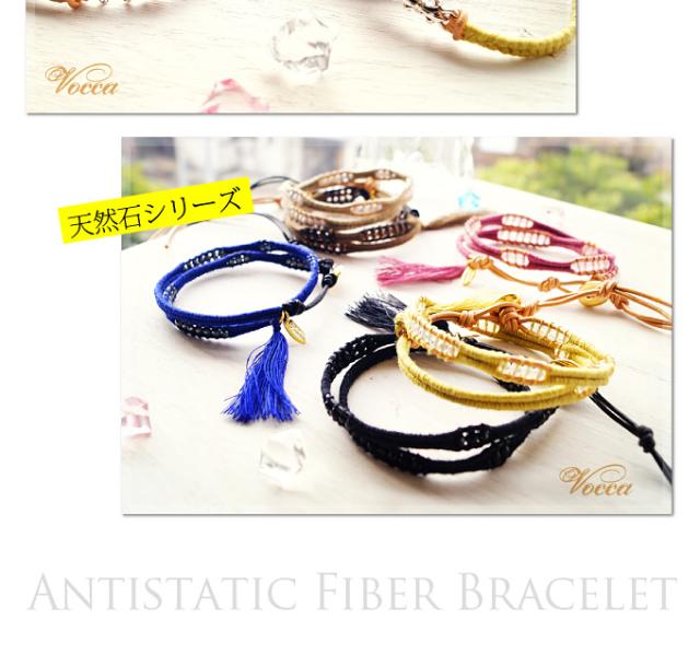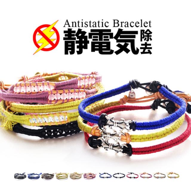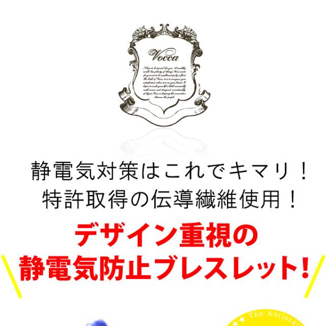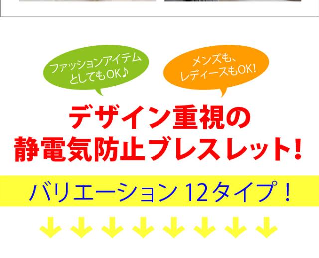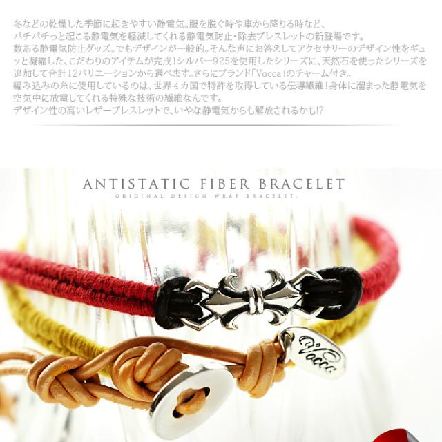 乾燥した季節に起きやすい静電気。パチパチっと起こる静電気を軽減してくれる静電気防止・静電気除去ブレスレットの新登場です。数ある静電気防止グッズ。でもデザインが一般的…そんな声にお答えして、アクセサリーのデザイン性をギュッと凝縮した、こだわりのアイテムが完成!シルバー925を使用したシリーズに、天然石を使ったシリーズを追加して合計12バリエーションから選べます。さらにブランド「Vocca」のチャーム付き。編み込みの糸に使用しているのは、世界4カ国で特許を取得している伝導繊維!身体に溜まった静電気を空気中に放電してくれる特殊な技術の繊維なんです。デザイン性の高いレザーブレスレットで、いやな静電気からも解放されるかも!?【S-1〜3】長さ:約17cm(+調節部約6.5cm) 幅:最大約7mm 厚み:最大約3mm 重さ:約4.8g【S-4〜6】長さ:約15cm(+調節部約6.5cm) 幅:最大約7mm 厚み:最大約3mm 重さ:約4.8g【T-1〜3】長さ:約31cm(+調節部約6.5cm) 幅:最大約6mm 厚み:最大約3mm 重さ:約5.7g【T-4〜6】長さ:約30cm(+調節部約6.5cm) 幅:最大約6mm 厚み:最大約3mm 重さ:約5.2g■レザー/伝導繊維/シルバー925 or ブラス&天然石≪c-code≫ ブラック/レッド/ブルー/グリーン/パープル