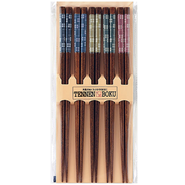 天然木使用のお箸5膳組セット。レトロな和柄で親しみのあるお箸です。すべり止め付きで使いやすいです。お客様用のおはしとしてもおすすめです。