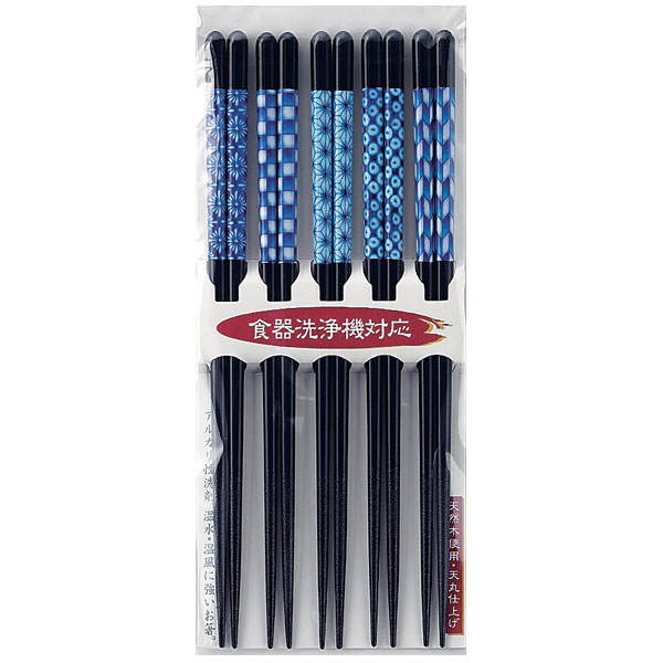 <メール便 送料無料>箸 5膳組 セット 藍模様 23cm イシダ【食洗機対応/箸セット/お箸セット