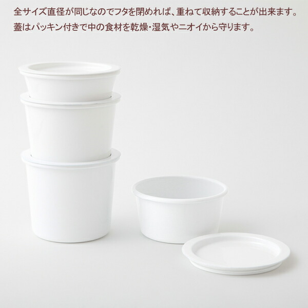 小泉誠デザインのホーローシリーズ「KAICO」。蓋にはシリコンパッキンがついており密閉可能。スタッキング出来て省スペースで収納できます。そのまま食卓で器としてもおすすめ。