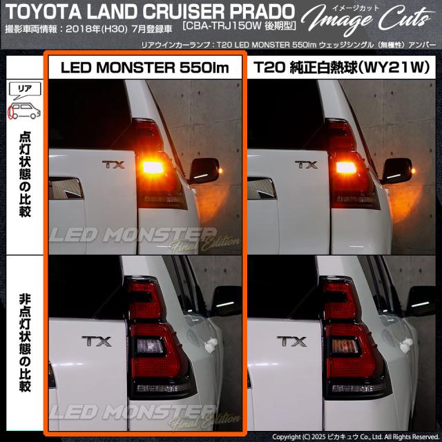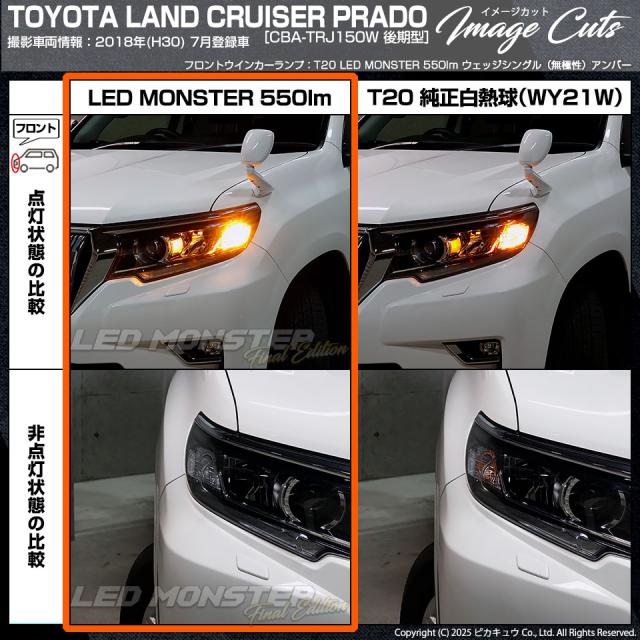 ピカキュウ,LED専門店ピカキュウ,LED,ウインカー球,オレンジ球,ウインカーランプ,ターンシグナルランプ,ハザードランプ,LED MONSTER,LEDモンスター,t20,T20シングル,ウェッジ球,wy21w,w21w,WY21W,W21W,オレンジ,アンバー,橙,トヨタ,ランクルプラド,ランドクルーザープラド,TRJ150W,後期,TOYOTA,LAND CRUISER PRADO,プラド150系,150系プラド