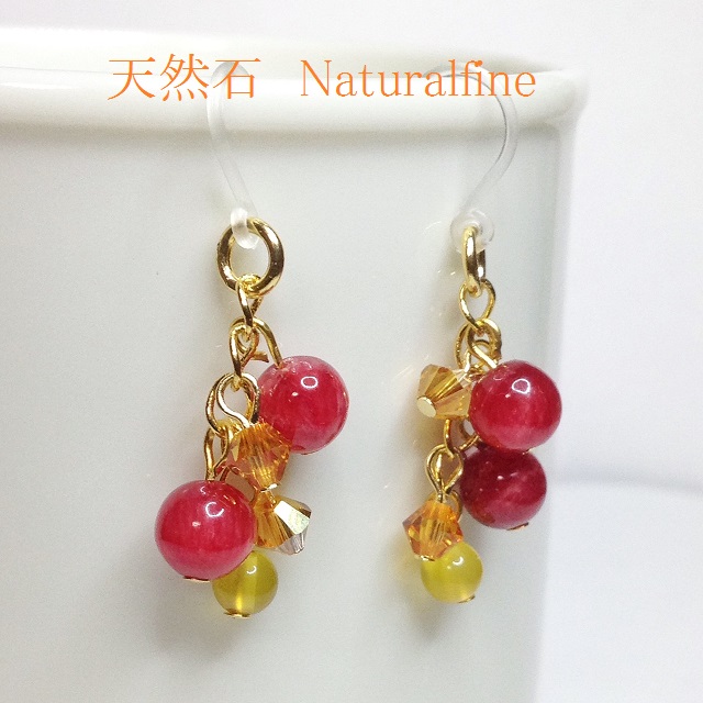 ピアス レッドカルセドニー 天然石 メノウ イヤリング スワロフスキー チタン 樹脂金具 パワーストーン 縁を繋ぐ