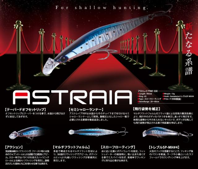 軽く湾曲したテーパードオフセットリップがハードコンディションでも飛び出さずしっかりアピール。またロッドを立てても水を掴み、表層でもアクションします。レンジは他のシャローランナーより皮一枚下の20〜60cm。ファストリトリーブでウォブ5:ロール5広範囲にアピール。スローリトリーブでウォブ2:ロール8喰わせのアクションを発生。ヒデはやしが提唱するクイック&スローにベストマッチ!マルチフラットサイドがロール時にボディシルエットより細いフラッシングを発生。タフコンディションやスレシーバスにも口を使わせます。ドリフトペンシルから踏襲したストリームラインフォルムが飛行姿勢のブレを収束し、安定した飛距離を実現。