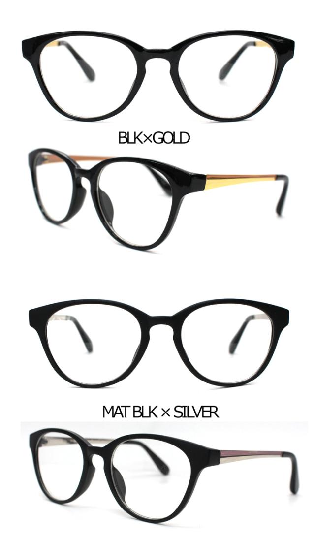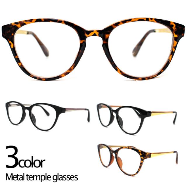 テンプルをメタルにした流行のラウンド型眼鏡。日々のコーディネートに変化をつけれる1品。