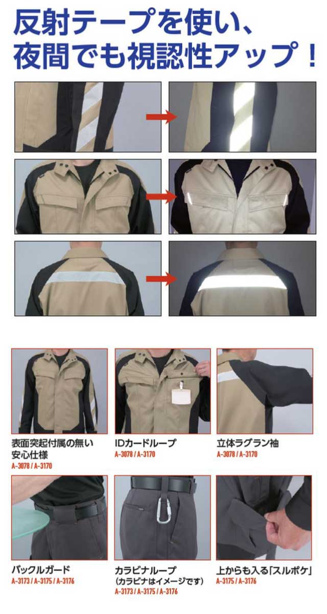 作業服 コーコス co-cos 長袖シャツ A-3078 春夏素材 作業着 大きいサイズ5L