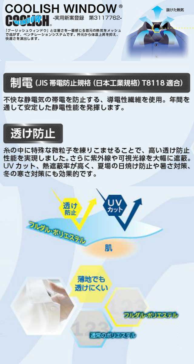 ・素材:制電フルダル鹿の子 ポリエステル100%