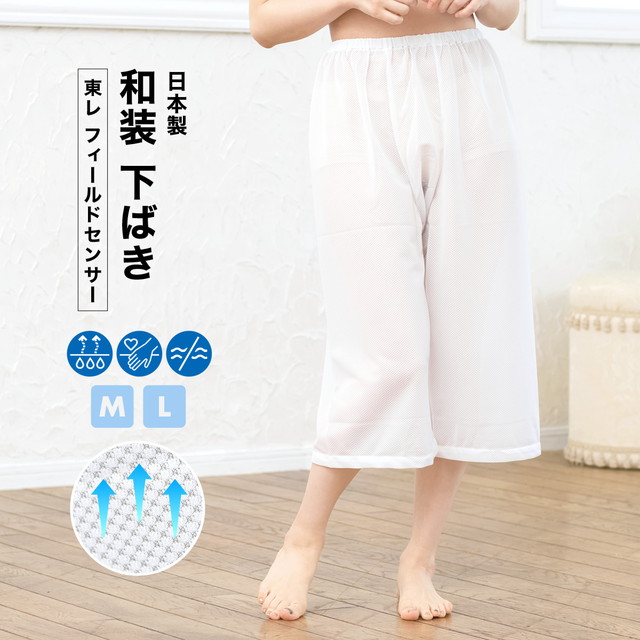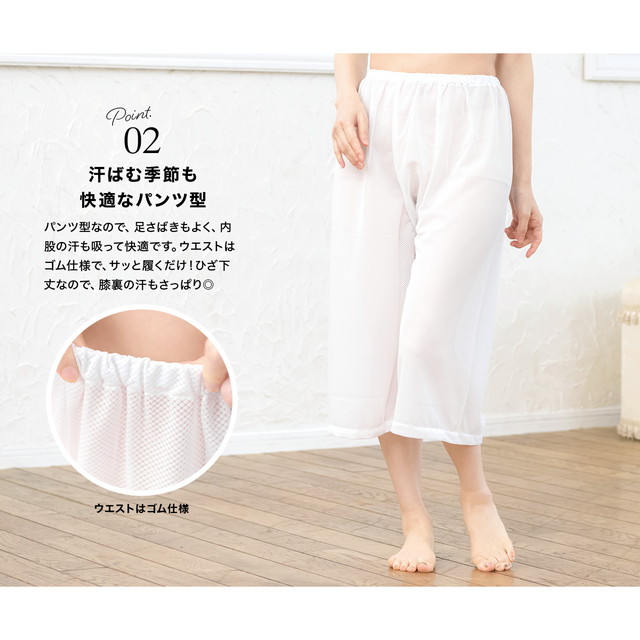 裾除け ステテコ 女性用 レディース パッチ 和装 裾よけ 涼しい 爽やか快適 メッシュ 吸汗 盛夏 白 ホワイト 東レ フィールドセンサー 蒸れにくい ニット素材 通年 肌着 下穿き 和装下着 着付け小物 和装小物 日本製 M L【暑さ対策_b】