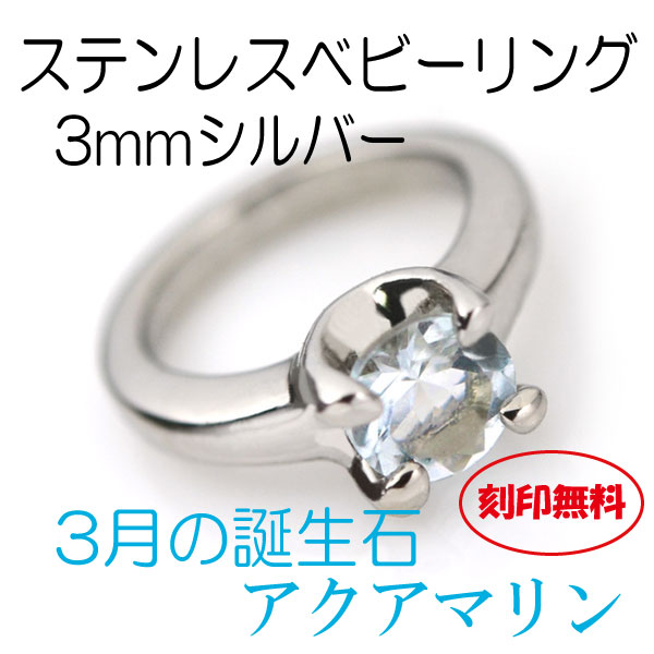 送料無料 刻印無料 サージカルステンレス製 ベビーリング 3月アクアマリン 3mm シルバーモデル