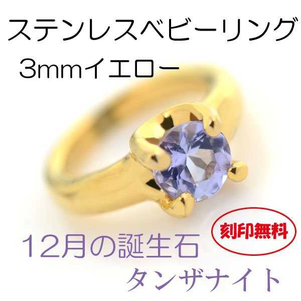ベビーリング 送料無料 刻印無料 ステンレス 12月タンザナイト 3mm イエローモデル サージカルステンレス