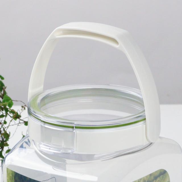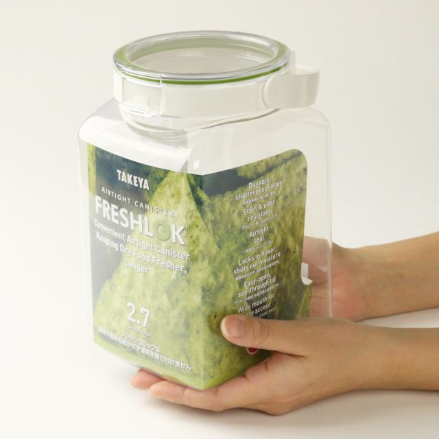 ロック機能付きでフタを開けたまま固定できます。粉物の入れ替え時にフタが閉まらず便利です。また、大口径なので出し入れもしやすいです。
