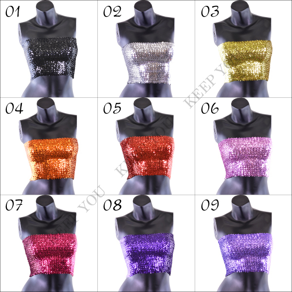 スパンコール チューブトップ S/Mサイズ 全14色 ショートタイプ ダンス 衣装 トップス【コスプレ イベント ダンサー インナー】=┃