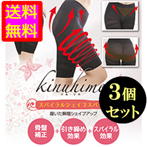 ●送料無料☆骨盤&ウエストサポート⇒見た目-5cm!?【kinuhime(きぬ-ひめ)スパイラルシェイプスパッツ 3個セット】materi50P6