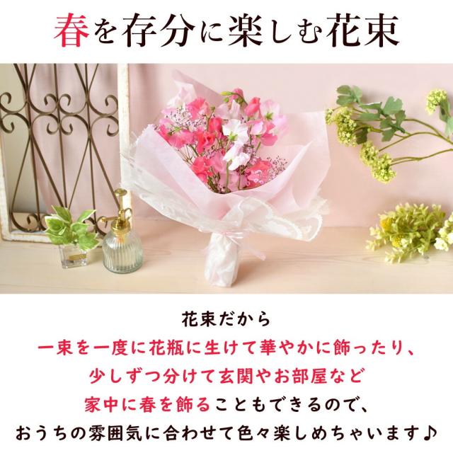 春をお届け スイートピーの花束 送料無料 おめでとうブーケ スイートピー かすみ草 花束 ブーケ 誕生日 プレゼント 定年 女性 男性 上司 花 春式 フラワーギフト お祝い お花 プレゼント 春 卒業 式 高校生 先生