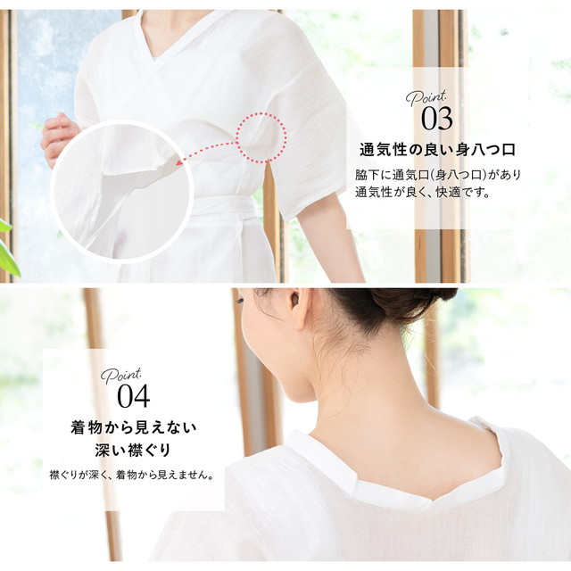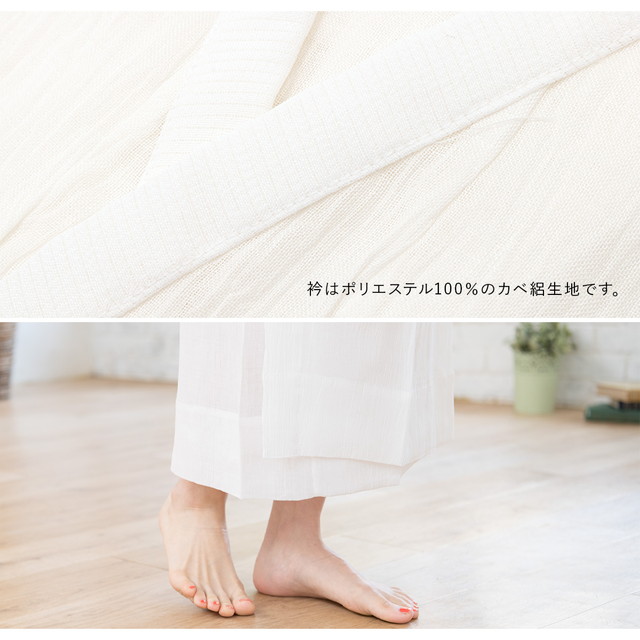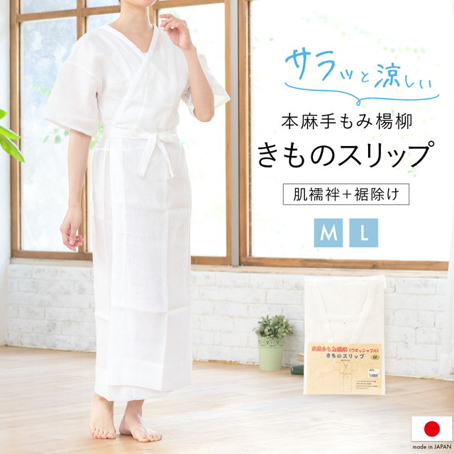 肌襦袢 ワンピース タイプ 筒袖 着物 裾よけ 裾除け きものスリップ 肌着 白 ホワイト 本麻 ジョーゼット 手もみ楊柳 吸汗 夏 和装下着 着付け小物 和装小物 M L 日本製