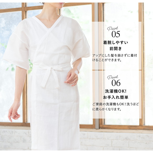 洗うほどに柔らかくソフトな肌触りの本麻のジョーゼット(手もみ楊柳)素材は、洗濯しても型くずれや縮みもなく柔らかな風合いです。