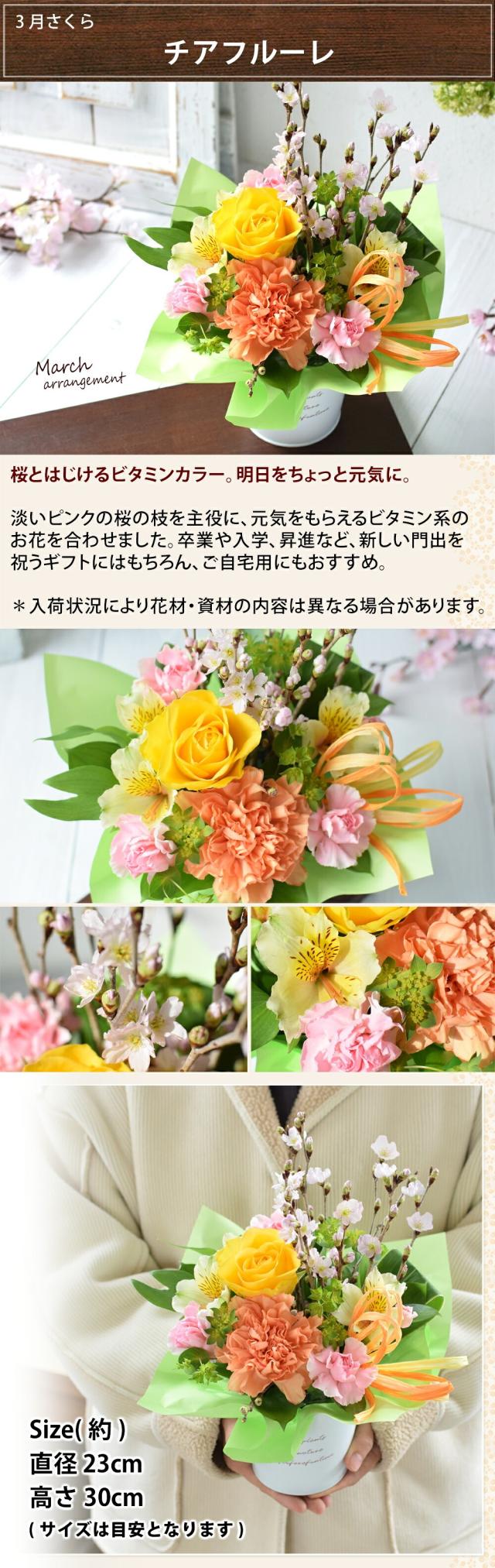 | 商品名 | 【お誕生日のお花*3月】さくらのアレンジメント「チアフルーレ」 |