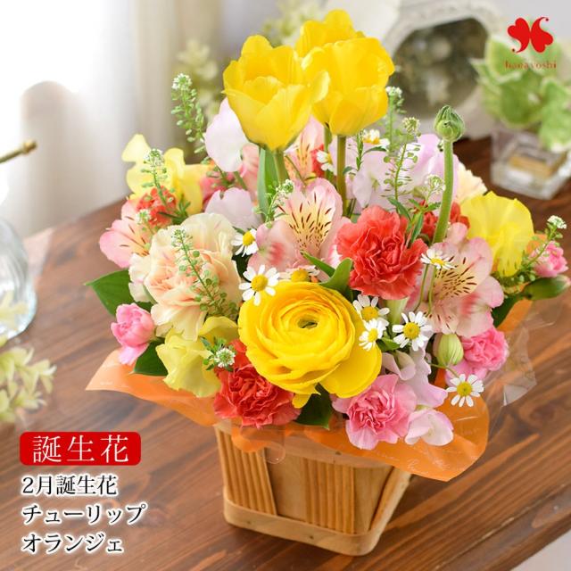 誕生花を使った フラワーアレンジメント 2月 チューリップ 「メルティ」 選べる 誕生月 の 生花アレンジ お誕生日 お祝い 誕生日 花 お花 ギフト プレゼント 誕生プレゼント アレンジ フラワー 開店祝い 展覧会 発表会 退職祝い 結婚祝い