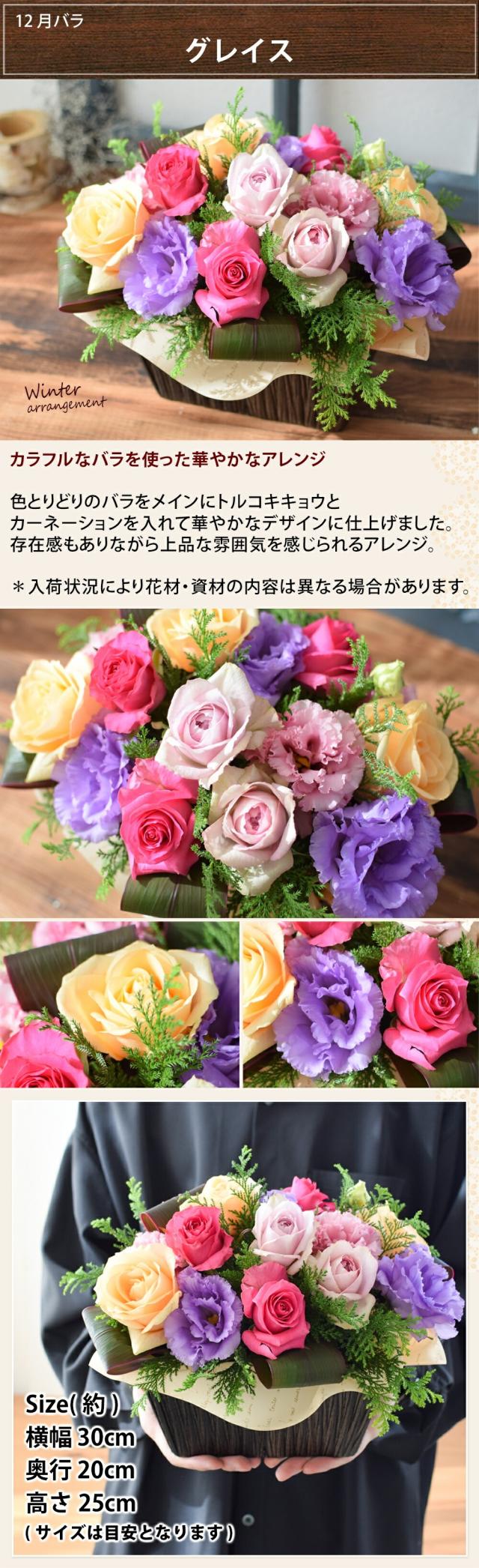 ●12月 バラのアレンジメント「グレイス」
