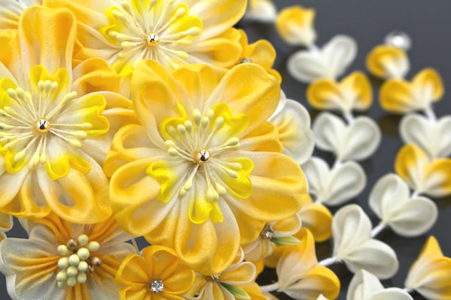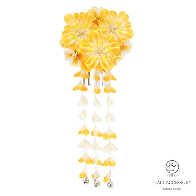 成人式 髪飾り 成人式の髪飾り つまみ細工 黄色 イエロー 振袖 ピンク 桜 ブラ 藤下がり 正絹 髪留め ヘアアクセサリー 和装