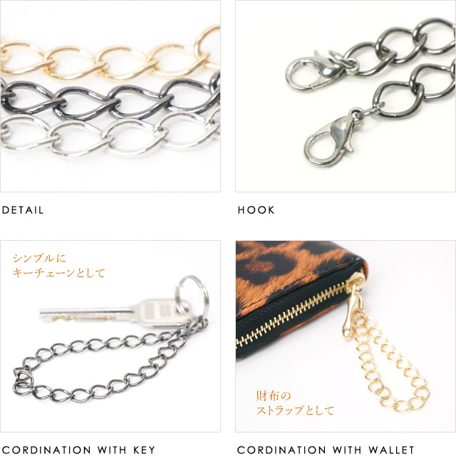 財布や鍵、クラッチ型のバッグなどに直接取付けてストラップやキーホルダーとしても活用できます。