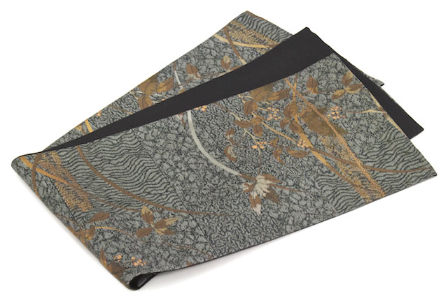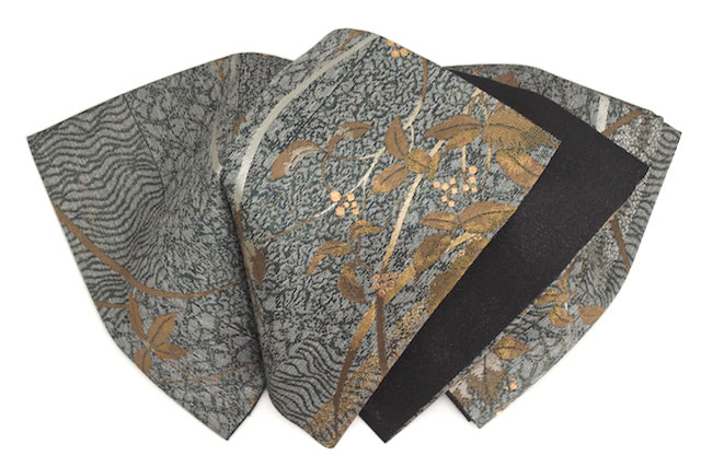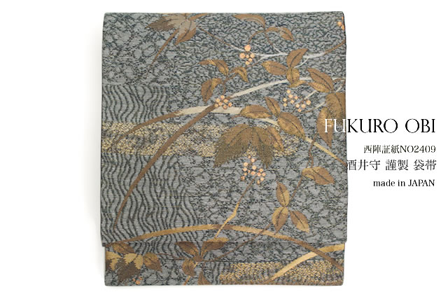 【未仕立て】袋帯 京都西陣織物 灰色 グレー 波目文様 葦 全通柄 酒井守 金証紙 No2209 フォーマル カジュアル 日本製