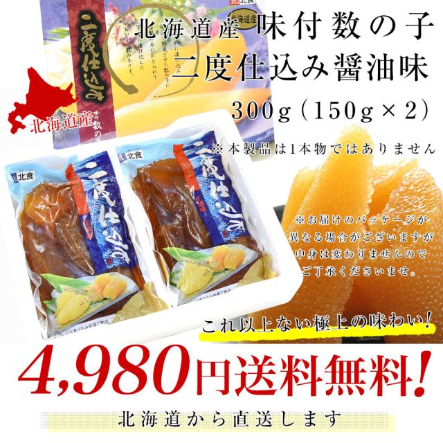 北海道より直送 北海道産 味付け数の子 二度仕込み醤油味 (150g×2P) 国産数の子 送料無料 特別スポット かずのこ カズノコ【発送時期:カート内に記載しております】