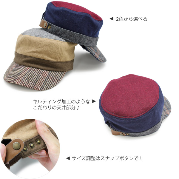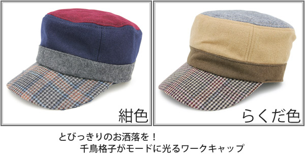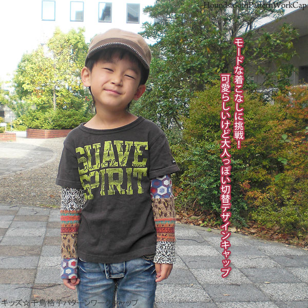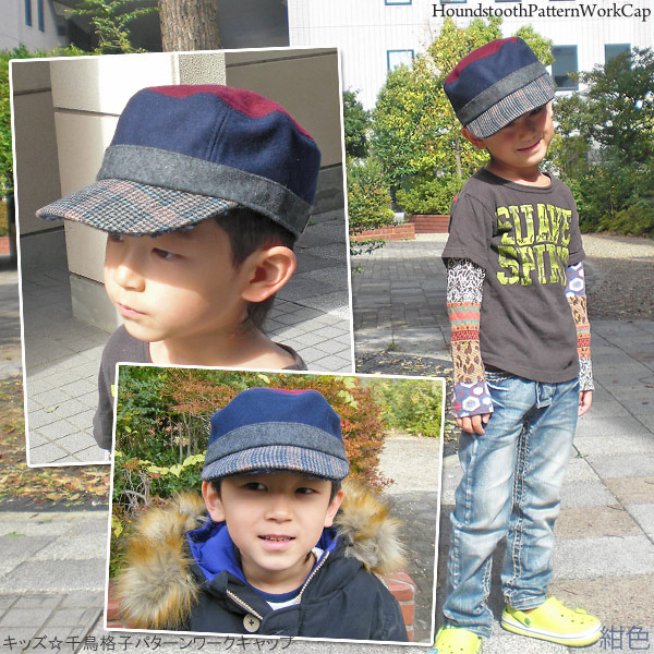 帽子 子供用 ワークキャップ [メール便可] キッズ 秋冬 サイズ調節 CAP ウール 男の子 女の子 / キッズ 千鳥格子パターンワークキャップ