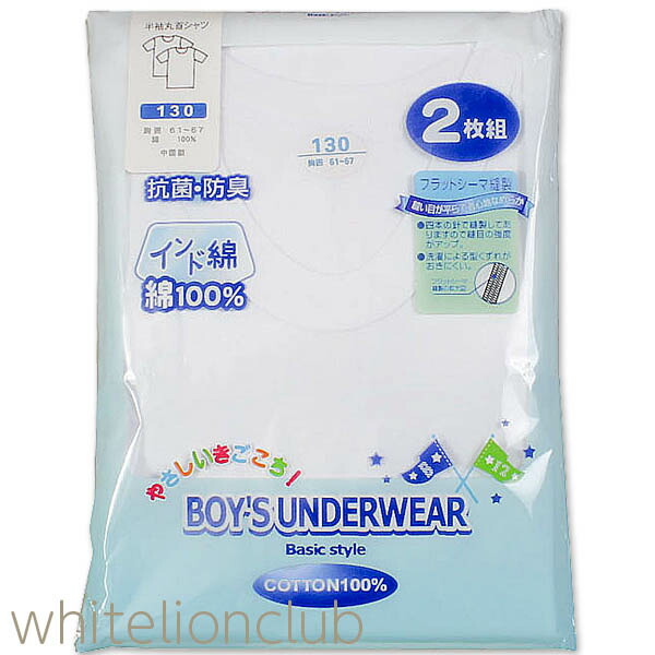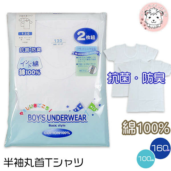 半袖 丸首 2枚組 綿100% 抗菌防臭 100-160cm | 快適フィット オールシーズン 無地 男の子 綿 インナーシャツ 肌着 下着