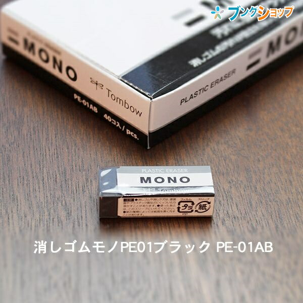 トンボ鉛筆 モノPE01 ブラック 事務・製図用消しゴム 幅17×厚さ11×全長43mm PE-01AB 汚れが目立たないブラックボディ フタル酸エステル不使用 mono