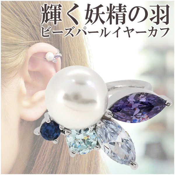 妖精の羽 パール ジルコニア シルバー イヤーカフ(1P/片耳用)